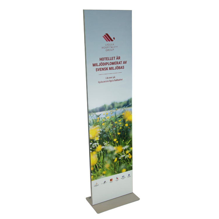 Skylt med hjärtstöd 4+0 tryckt i Indigo,